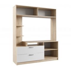 Тумба с тремя выдвижными ящиками на шариковых направляющих для школьных принадлежностей и три открытых полки собираются зеркально.