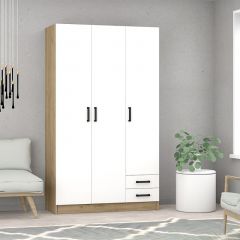 Функциональный трехстворчатый шкаф с оригинальным дизайном. Состоит из трех отделений: два со штангами для одежды и одно отделение с полками. Средняя створка выполнена с зеркалом.